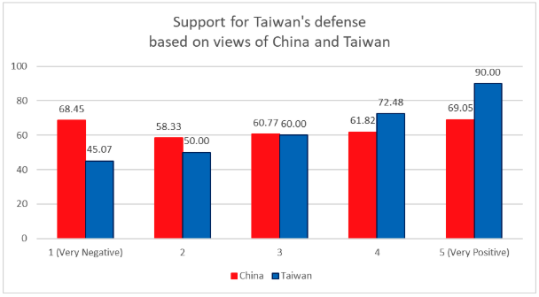 Figure: Support for Taiwan’s defense based on views of China and Taiwan. (Figure source: Created by author using data from Centiment.)